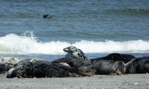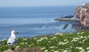 Der Wind ist zwar immer noch recht kühl, aber so sonniges Wetter werden wir wohl auf unserem Rückweg nicht mehr haben. Daher bleiben wir 3 Tage auf Helgoland. Am nächsten Morgen bringt uns Kurt von der SY „Atlantica“ Brötchen mit. Das ist ja mal ein Service! Nach dem Frühstück müssen wir uns im Päckchen noch verholen, das innenliegende Motorboot möchte ablegen. Gegen Mittag machen wir uns dann auf zu einer Erkundungstour über die Insel. Einfach traumhaft. Ab 16 Uhr wird es dann auf der Insel wieder ruhig, da die Tagestouristen auf dem Heimweg sind. Wir genießen einen gemeinsamen Abend mit unseren Nachbarn von der SY „Atlantica“ bei leckerem Vino. Am nächsten Tag werden Brigitte und Kurt wieder Richtung Waddenzee ablegen. Wir werden die Düne (Nachbarinsel auf Helgoland) erkunden. Ganz begeistert sind wir von den vielen Robben am Strand.