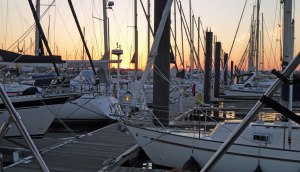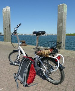 Es ist Pfingstwochenende und die Inseln bei diesem traumhaften Wetter gut besucht. Wir haben Glück und ergattern noch einen freien Liegeplatz am Schwimmsteg. Der Hafenmeister bestätigt später, wir können bis Dienstag dort liegen bleiben. Wir kommen aus dem beschaulichen Lauwersoog, jeder Segler half da dem anderen beim An- und Ablegen, immer ein netter Schnack mit dem Hafenmeister. Kulturschock auf Norderney. Hier ist Party angesagt, das Publikum entsprechend. Die helfende Hand beim Anlegen sofort wieder weg. Ich hätte da noch eine Leine gehabt. Egal, selbst ist die Frau. Ungeduscht und in der „Segelkluft“ der Weg über dem Steg zum Hafenbüro. Gegrüßt wird hier kaum und viele laufen eher aufgestylt rum oder sitzen am Nachmittag mit dem ersten Bier im Cockpit. Wir schauen später dem Treiben im Hafen zu und der „Run“ auf die letzten Liegeplätze begann schnell. Am nächsten Tag hab ich dann mal mein Klappfahrrad ausgepackt und bin zum örtlichen Edeka und ein wenig durch den Ort geradelt. In Lauwersoog gab es keine Einkaufsmöglichkeiten und somit mussten die frischen Lebensmittel wieder aufgefüllt werden. Heiko hat in der Zwischenzeit den neuen Cockpittisch geölt. Am nächsten Tag haben wir uns dann gemeinsam mit den Fahrrädern Richtung Leuchtturm aufgemacht. Nach erklimmen der 253 Stufen wurden wir mit einer tollen Aussicht belohnt. Weiter zur „Weißen Düne“; dort wollten wir uns stärken (ein Tipp von Ingrid). Aber an Pfingsten gibt’s keine Möglichkeit hier einen Platz zu bekommen und selbst wenn, die Bestellung hätte bestimmt ewig gedauert. Mit einem Notfall-Keks ging es dann weiter mit dem Fahrrad zu einer Aussichtsdüne und dann an der Promenade in den Ort zurück. Auch hier haben wir nix gefunden zum gemütlichen Einkehren. Also ab in die zweite Reihe. Und bei „da Sergio“ fanden wir endlich ein gemütliches Plätzchen. Das Lokal ist sehr zu empfehlen, freundliche Bedienung und alles sehr lecker.