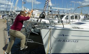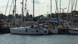 Viele Plätze mit Mooringleinen sind noch frei. Für ein Anlegemanöver scheint uns jedoch eine Hand zu fehlen. Da der Wind nun auch noch etwas zugenommen hat, nehmen wir die Möglichkeit war und gehen längsseits an eine andere deutsche Segelyacht. Der Skipper bittet uns die Leinen nicht zu fest zu belegen. Ich frage, ob wir mit viel Schwell zu rechnen haben? Aber der Grund liegt in dem blauen Rumpf der Hanseyacht. „Da würde man jeden Abdruck sehen“ so unser Nachbar. Hoffentlich wäscht er regelmäßig seine „Fendersocken“. Der Dreck, der sich dort sammelt, wirkt wie feines Schleifpapier. Später sehen wir bei unserem Nachbarn, die Yacht ist länger als unsere, aber bezahlt wird für Kleine. Die sichtbare Größenangabe wurde entfernt. Naja irgendwie komisch die Leute!!!