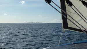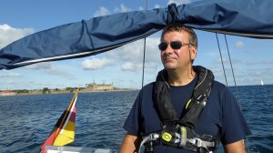 Am nächsten Tag klingelt der Wecker wieder um 7 Uhr. Kurz vor 9 Uhr legen wir gut vorbereitet ab. Es ist kühl geworden und auch Regen ist wieder vorhergesagt. Wir schlüpfen in die warmen Sachen und das Ölzeug. Die Stullen sind für die weite Reise geschmiert. Damit ist auch die Versorgung unterwegs gesichert. Wir setzen die Segel mit Kurs zum Ort Gilleleje. Anfangs haben wir nur Wind aus WSW mit 3-4 Bft. Der dreht dann noch etwas auf West und nimmt auf 4-5 Bft zu. Die Welle steht mit einem Meter, der Kurs ist anspruchsvoll zu steuern, aber Heiko hat viel Spaß dabei.