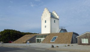 Wir erkunden den kleinen Ort rund um den Hafen von Vesterø. Am nächsten Tag verholt sich unser Nachbar an einen anderen Steg, da er noch etwas länger bleibt und für die angekündigten Sturmtage einen gut geschützten Liegeplatz sichern möchte. Vom örtlichen Fischkutter (der wohl nichts von der EU hält – siehe Bild) gab es heute wieder ausreichend Jomfruhummer, den Heiko dann später noch zubereitet. Heute regnet es immer mal wieder. Daher entschließen wir uns zu einer Inseltour mit dem Bus. Dieser pendelt auf der Insel kostenlos bis nach Østerby, wo der andere Hafen liegt. Die Tour dauert ca. 40 min und wir können so ganz bequem einen Eindruck von der Insel gewinnen. Unterwegs sehen wir immer mal wieder erhaltene alte Häuser, die früher mit Seetang gedeckt worden sind. Eine der Inselkirchen wurde umgebaut und nun findet dort Meditation mal anders statt – in Form von Wellness. Gebäude wurden angebaut und die Kirche zu einem Hotel mit Wellnessbereich umfunktioniert. In Holland haben wir das auch schon gesehen, dass Kirchen in unserer heutigen Zeit einer anderen Nutzung zugeführt werden. Wieder im Hafen zurück, nutze ich die Zeit bis zum nächsten Schauer für einen kühlen Sprung in die Ostsee. Gleich neben dem Hafen gibt es einen Strand. Der nächste Regenschauer ist schon zu sehen, schnell zum Schiff zurück. Aber auch dieser zieht schnell vorbei und ich spaziere noch durch die Heidelandschaft am anderen Ufer vorbei. Der Abend ist wieder sehr schön und noch recht warm, so das wir den Sonnenuntergang wieder aus dem Cockpit genießen können. Der Fischer fährt wieder zum Fang. Auf unserer Reeling nehmen die Schwalben zahlreich Platz und geben ein wunderbares „Schwalbenkonzert“ ab.