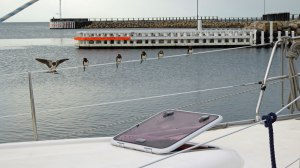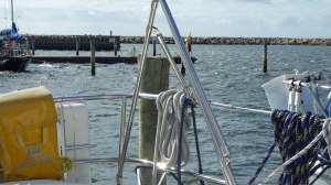 Wir haben weitere Sicherungsleinen ausgebracht. Am nächsten Morgen ging es dann ab… wir haben bis zu 40 Knoten Wind im Hafen gemessen. Wir lagen dennoch ziemlich ruhig, obwohl auch die Wellen im Hafenbecken standen. Es ist so unglaublich windig!