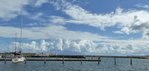 Wir schauen ab und zu im Cockpit nach. Hoffentlich halten die Leinen und die Holzpoller! Der Sturm ist dann am Nachmittag überstanden. Der Wind legt sich etwas. Wir gehen noch etwas Einkaufen und beim Fischhändler vorbei. Heiko möchte gerne am nächsten Tag weitersegeln und nicht noch mehr Zeit in Grenaa festliegen. Ich schaue immer wieder auf das Wetter. Es sollen weiterhin Regenschauer durchziehen, die dann in Böen mehr Wind bringen. Die Welle steht zudem auch noch vom Vortag und wenn der Wind nur etwas östlicher kommt als vorhergesagt, sind wir die 50 Seemeilen auf einem sehr ungemütlichen Amwind-Kurs unterwegs. Wir stellen uns dennoch den Wecker auf 7 Uhr. Am frühen Morgen schaue ich mir die aktuellen Vorhersagen für den Tag noch einmal an, alles „kleine Entscheidungen“ und wir bleiben noch einen weiteren Tag in Grenaa. Und das war auch gut so! Es kam wie vermutet, ein Wechsel aus Sonne und Regenschauer mit viel Wind. Einige wenige Boote haben zwar abgelegt, die laufen dann aber vor dem Wind Richtung Norden ab und haben bestimmt keine 50 Seemeilen vor sich.