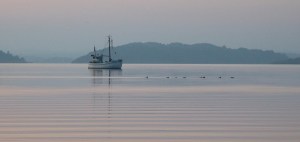 Eine Bucht für uns ganz alleine. Fernab der gängigen und gut besuchten Routen. Wir finden hier eine traumhaft schöne Natur. Können uns kaum „satt“ sehen, so begeistert sind wir. Die Kühe auf dem Felsen, kleine Feriendomizile am Ufer, am Abend ziehen die Enten mit lauten Gezeter ihre Kreise… hier einige Bilder für euch. Wir sehen kleine und große Fische springen. Versuchen unser Anglerglück. Aber zu uns kommt kein Fisch.