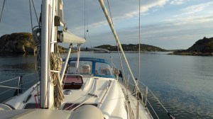 Am nächsten Morgen wacht Heiko auf, schaut aus dem Niedergang und ist enttäuscht. „Da scheint ja gar nicht die Sonne!“. Wir werden in diesem Sommer von der Sonne wirklich verwöhnt. Sehr stabile Wetterlage mit viel Sonnenschein, verlässlichen Segelwind um die Mittagszeit und abends schläft der Wind wieder ein. Daher ist es für uns auch möglich in den Buchten nur vor Buganker sicher zu übernachten (über einen zusätzlichen Heckanker – wie die Schweden/Norweger- verfügen wir nicht). Aber an dem heutigen Tag macht die Sonne eine Pause und es ist gleich recht kühl. Also springen wir wieder in die warme Kleidung. Wir wollen die naheliegenden Kosterinseln vom Wasser erkunden. Falls es dort einen geeigneten Liegeplatz gibt und es uns gefällt bleiben wir, ansonsten geht es gleich weiter zum Idefjorden.