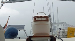 Am Montag kam dann die Nachricht von dem Techniker, das Ersatzteil ist vollständig eingetroffen. Wir hätten es gerne sofort einbauen lassen. Aber es wäre einfach zu viel Wind zum Kranen gewesen. Die Gefahr bestand dabei, dass wir zwar noch hätten auskranen können, aber danach auf dem Trailer an Land verbleiben müssen. Bis maximal 20 Knoten ist ein Einkranen ins Wasser noch möglich, aber danach hätten wir an Land über die Leiter ans Schiff klettern können. Wir haben uns mit dem Hafenmeister Lars beraten, Dienstag ist zu viel Wind, Mittwoch…??? Wir hofften auf ein bisschen Glück am Mittwochmorgen um 7 Uhr. Ab 10 Uhr sollte der Wind wieder auf 20 Knoten aufbrisen. Ob die Reparatur in der Zeit erfolgen kann? Wir sind früh auf und verholen uns schnell an den Platz zum Kranen. Das Achterstag ist ebenso zügig abgeschlagen. Wir sind bereit! Der Kran ist pünktlich und der Techniker kann alles schnell austauchen. Alles funktioniert ohne Probleme. Man muss auch mal Glück haben. Die Seepocken zur Öffnung für das Seewasser zur Kühlung müssen auch noch entfernt werden. Schnell noch ein Check der Opferanode für die Schraube und den Saildrive. Beide müssen auch im nächsten Frühjahr getauscht werden. Unsere „de BARONES“ ist schnell wieder im Wasser. Es wird auch Zeit, denn der Wind legt zu.
