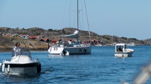 Der Morgen beginnt wie fast jeden Tag mit einem „Frühschwimmchen“. Nach dem Frühstück lichten wir den Anker und fahren in den nächsten Hafen um Diesel zu bunkern. Auch hier ist ordentlich Andrang. Dann geht es weiter durch den Sotenkanal. Sehr schöne Kanallandschaft, idyllisch mit den Kühen und kleinen Steinhäuschen am Uferrand. Die Brücke öffnet im Dauerbetrieb, da auch hier sehr viel Verkehr ist. Die Autos müssen warten. Wir haben Glück und rutschen mit der aktuellen Brückenöffnung durch. Wenige Schiffslängen nach uns dreht die Brücke zu. Später dann vorbei an Smögen (zu viel Party für uns, da muss nicht jeder hin) sind immer wieder sehr schicke Ferienhäuser am Ufer zu sichten. Zwischen den Schären navigieren wir neben dem elektronischen Plotter immer noch zusätzlich mit der analogen Seekarte. So haben wir immer beide den Überblick.