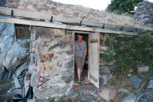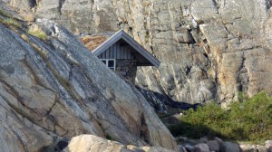Am nächsten Tag zieht es uns weitere 17 Seemeilen südlich. Zunächst noch eine kurze Strecke durch den Sund Richtung Käringö Fjorden. Dann wollen wir im Außenfahrwasser weiter Richtung Süden segeln. Die Segel gesetzt und nun bleibt der Wind nicht lange bei uns. Langsam schläft er ein. Und da hier außerhalb noch eine alte Welle von einem halben Meter steht, werden wir immer wieder ausgebremst. So machen wir keine Geschwindigkeit. Also holen wir die Segel wieder rein und müssen dann doch weiter motoren. Da der Wind nun komplett weg ist, motoren wir durch den Kyrkesund und biegen nach Backbord in einen kleinen Fjord ein. Ziel ist eine kleine Ankerbucht laut Seekarte. Die aber in keinem Revierführer benannt ist. Traumhaft schön. Wenige Ferienhäuser und Motorboote. Ansonsten viel Natur und kein weiterer Ankerlieger. Der Anker hält sofort, denn hier ist nur sandiger Grund. Das Wasser ist sehr sauber und lädt sofort zum Baden ein. Später am Abend lassen wir das Dinghi ins Wasser und wollen die Bucht noch etwas erkunden. Auch interessiert mich, was es mit dem kleinen aus Feldsteinen gebauten Häuschen am Felsen auf sich hat. Eine kleine Klettertour auf den Felsen lohnt sich. Welch ein toller Ausblick über die Bucht – seht selbst…