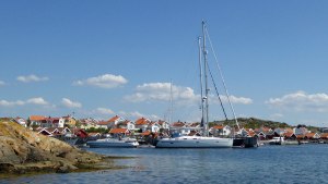 In den nächsten Tagen erkunden wir den kleinen niedlichen Ort und spazieren durch die kleinen Gassen. Sehr hübsch sind die Häuser anzusehen und die Gärten drum herum sehr gepflegt. Die Autos verraten uns, hier haben die „reichen“ Schweden ihre Ferienhäuser. Am Ortsrand gibt es einen kleinen Supermarkt mit angeschlossenem Fischladen. Wir füllen unsere Vorräte wieder auf. Und nutzen später im Hafen die Waschmaschinen und Wäschetrockner. Gerne hätten wir noch eine weitere Nacht hier verbracht, auch weil der Wind und die Welle immer noch nicht merklich abgenommen haben. Aber es ist alles ausgebucht. Und so ziehen wir weiter. Der Weg führt uns nun mehr ins Landesinnere auch um dem Wind und der Welle etwas zu entkommen. Aktuell sind wir rund um die Insel Orust unterwegs. Und was wir hier erlebt und gesehen haben, berichten wir dann in unserem nächsten Blogbeitrag. Ich komme mit dem Schreiben schon gar nicht mehr hinterher 😉