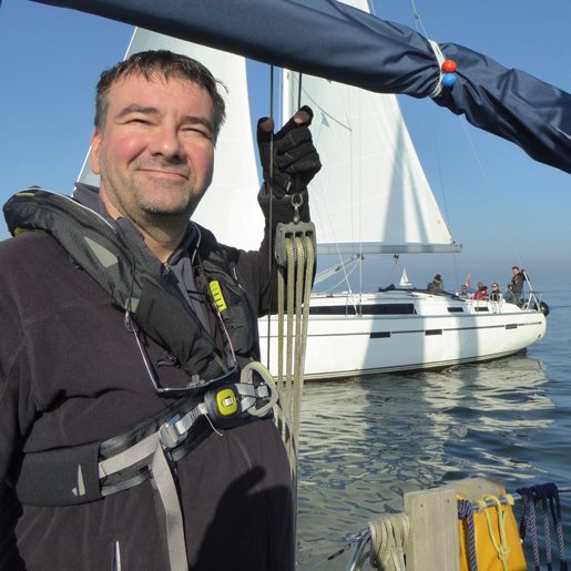 Schon seit meiner Kindheit bin ich gerne auf dem Wasser unterwegs. Ende der Neunziger Jahre wollte ich das Segeln ausprobieren und heuerte als Crew auf einem Kojencharter Törn von Rügen nach Schweden an. Da war alles dabei – ruhige See und Sonnenschein, stürmisches Wetter mit viel Welle. Der erste geknotete Fender fiel ins Wasser, ich hatte als Neuling keine Ahnung. Aber die Leidenschaft war entfacht. Vom Segelvirus infiziert, folgten viele weitere Törns auf der Ostsee, Müritz und dem Mittelmeer. Damals noch wohnhaft in Berlin lernte ich auf der Havel und Wannsee das Segeln mit der Jolle, der Binnensegelschein folgte. Das Segeln auf der hohen See brachten mir viele Kapitäne zur See während der vielen Ausbildungstörns bei und irgendwann legte ich dann auch den Sportküstenschifferschein (SKS) ab.